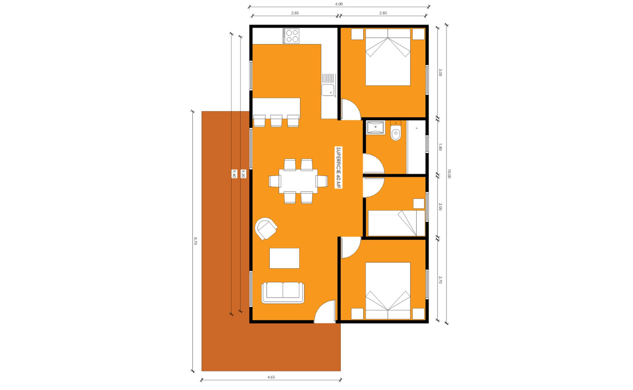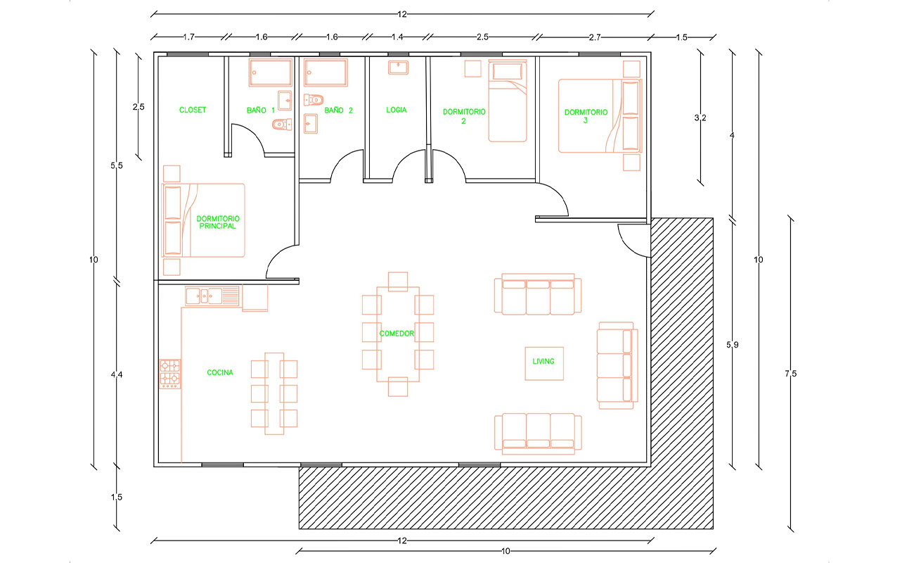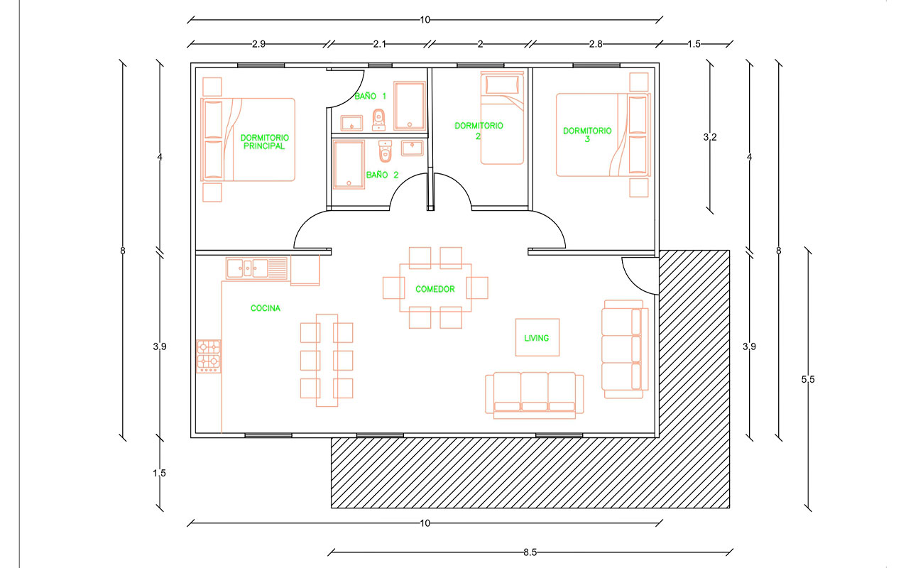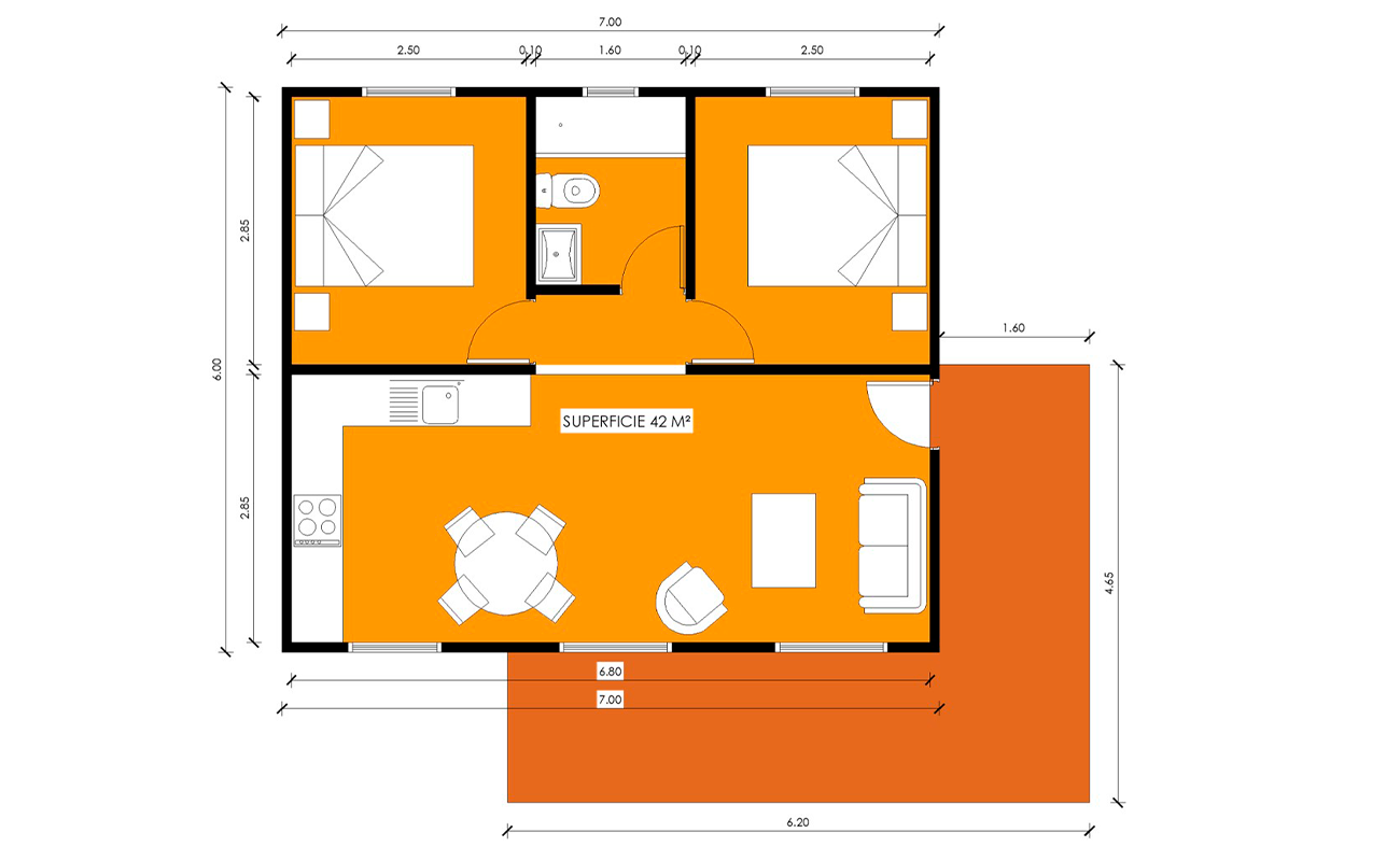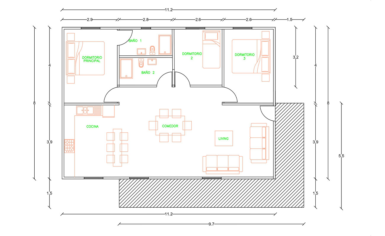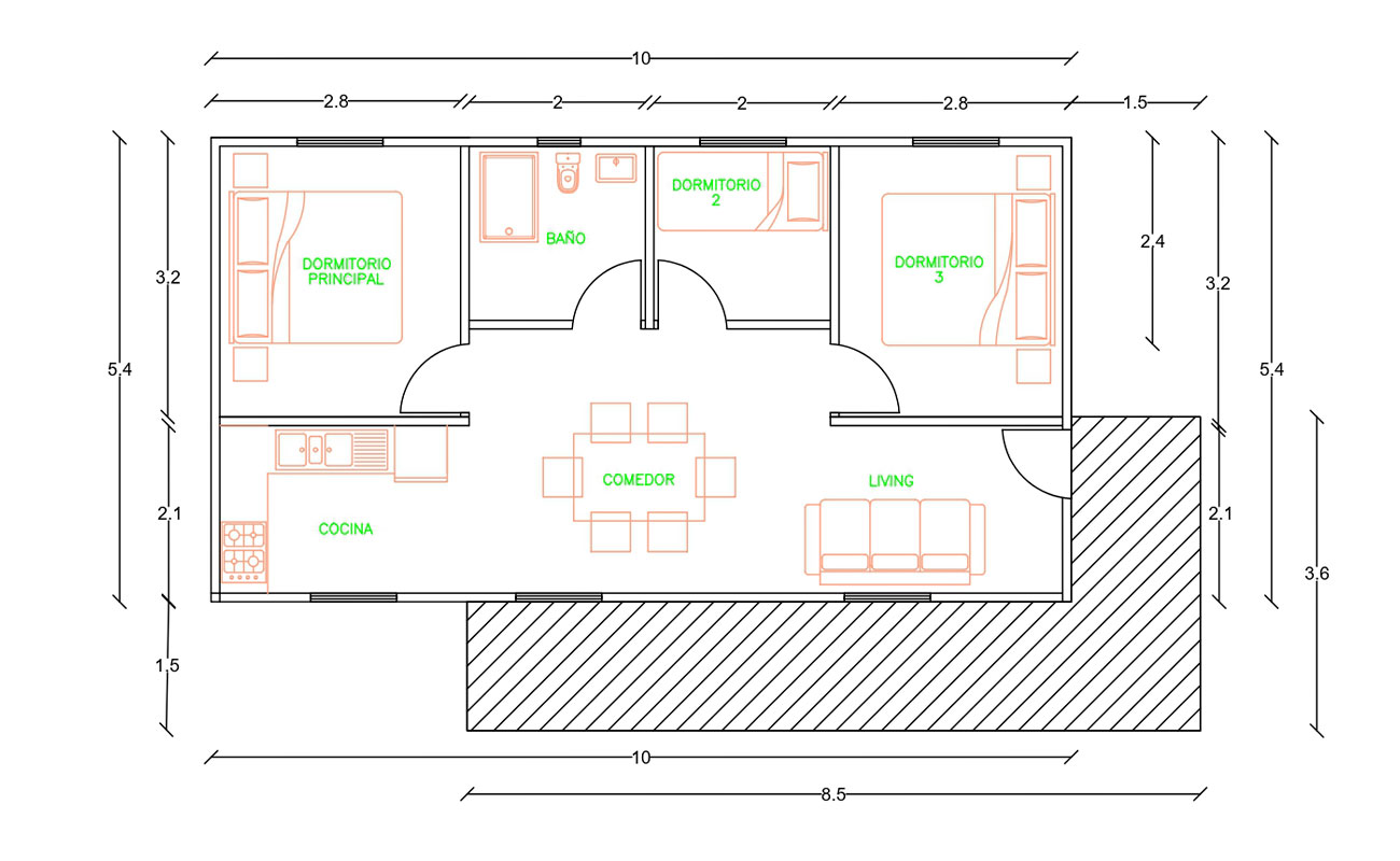El Modelo Laguna Azul consta de 36 a 120 mt2 y de 2 a 4 habitaciones, es ideal para comenzar con tu casa propia, económico y con buena distribución de los espacios.